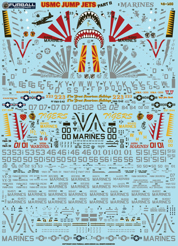 Furball 1/48 scale decals USMC Jump Jets Pt II Options for 16 AV-88 Harrier IIs 48-100