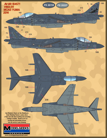 -AV-8B 164571, VMA-311, "WL-01", MCAS YUMA, 2014