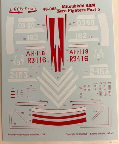 Lifelike 1/48 decals Mitsubishi A6M Zero Fighters Part 5 - 48-065