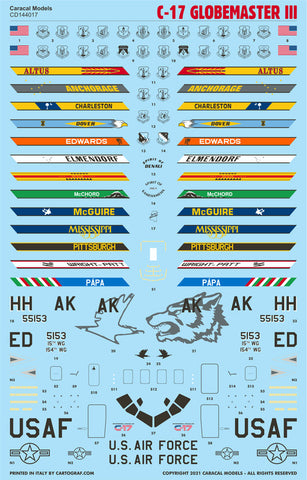 Caracal 1/144 decal CD144017 C-17 Globemaster III for the Revell kit