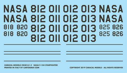 Caracal Decals 1/48 CD48161 NASA F-104 Starfighter for Hasegawa and Kinetic kits